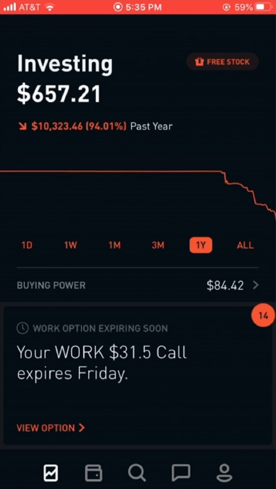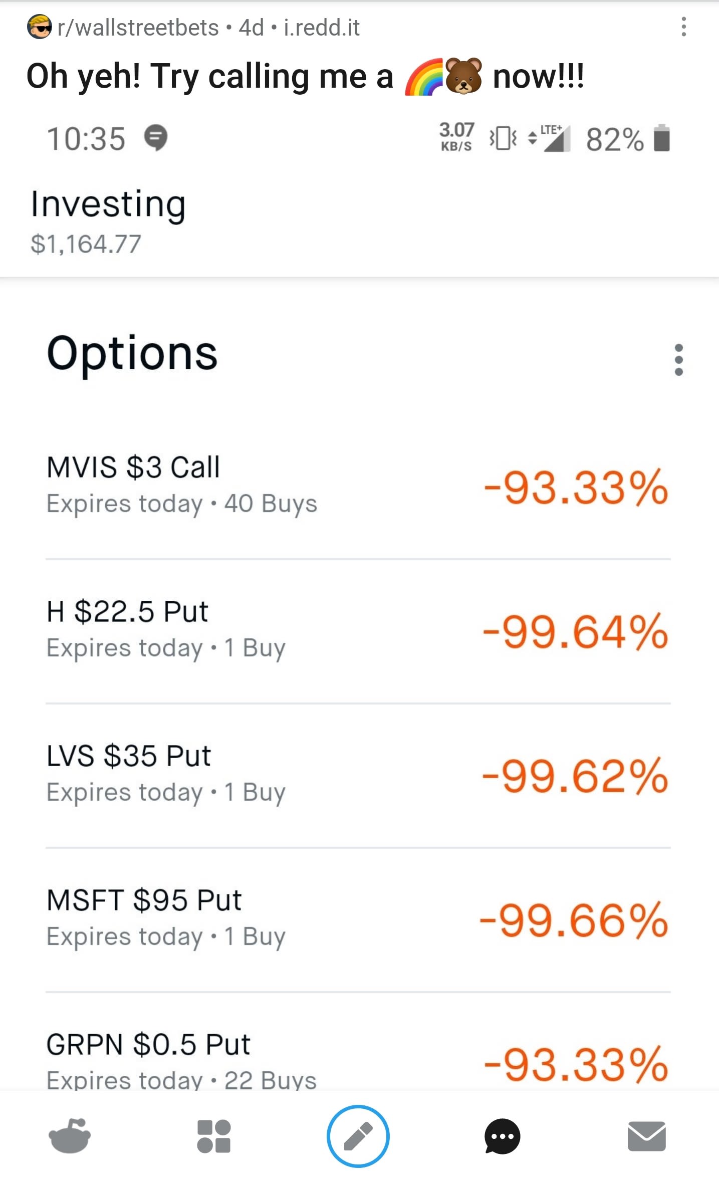 “I started with $5000 of boring investments for like two years then I lost it all being stupid with options.”