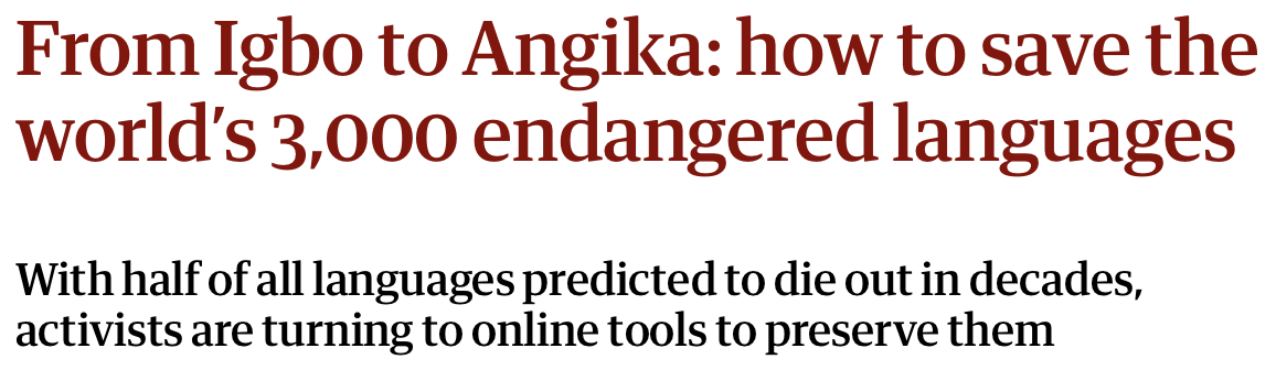 For example, Belew highlights the propensity for the media to use fatalistic terminology and perpetuate saviour mentalities when discussing endangered languages, using terminology such as ‘dying’, ‘extinct’, or ‘saving’. This can harm the well-being, rights, and aspirations of Indigenous and minoritized people. Unfortunately, these words and phrases are fed into AI large language models (LLMs), which in turn perpetuate their use – as exemplified by the first sentence of this article.