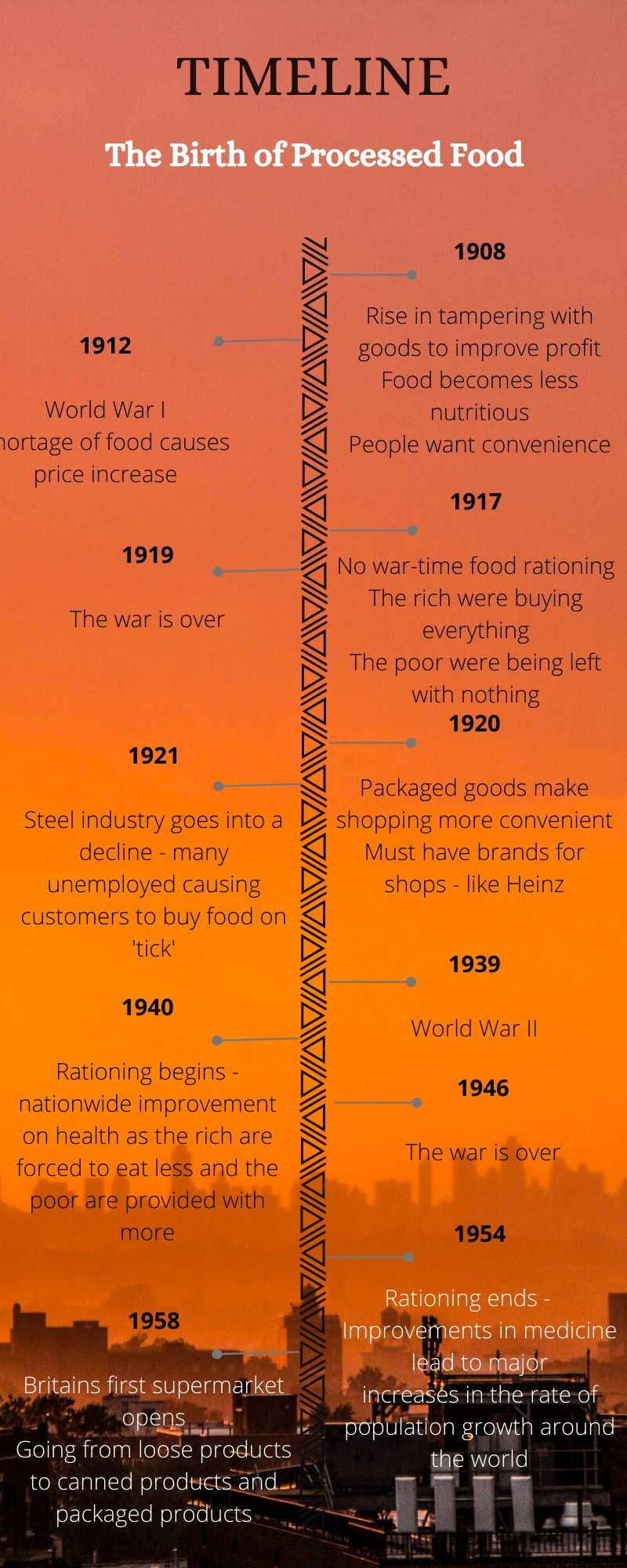 From the early 1900s to the present day, the nations access to food has changed so drastically. From popping into your local corner shop and asking the shopkeeper for small portions of loose products to feed the family for a day or so - to the revolutionary self-service and canned goods.