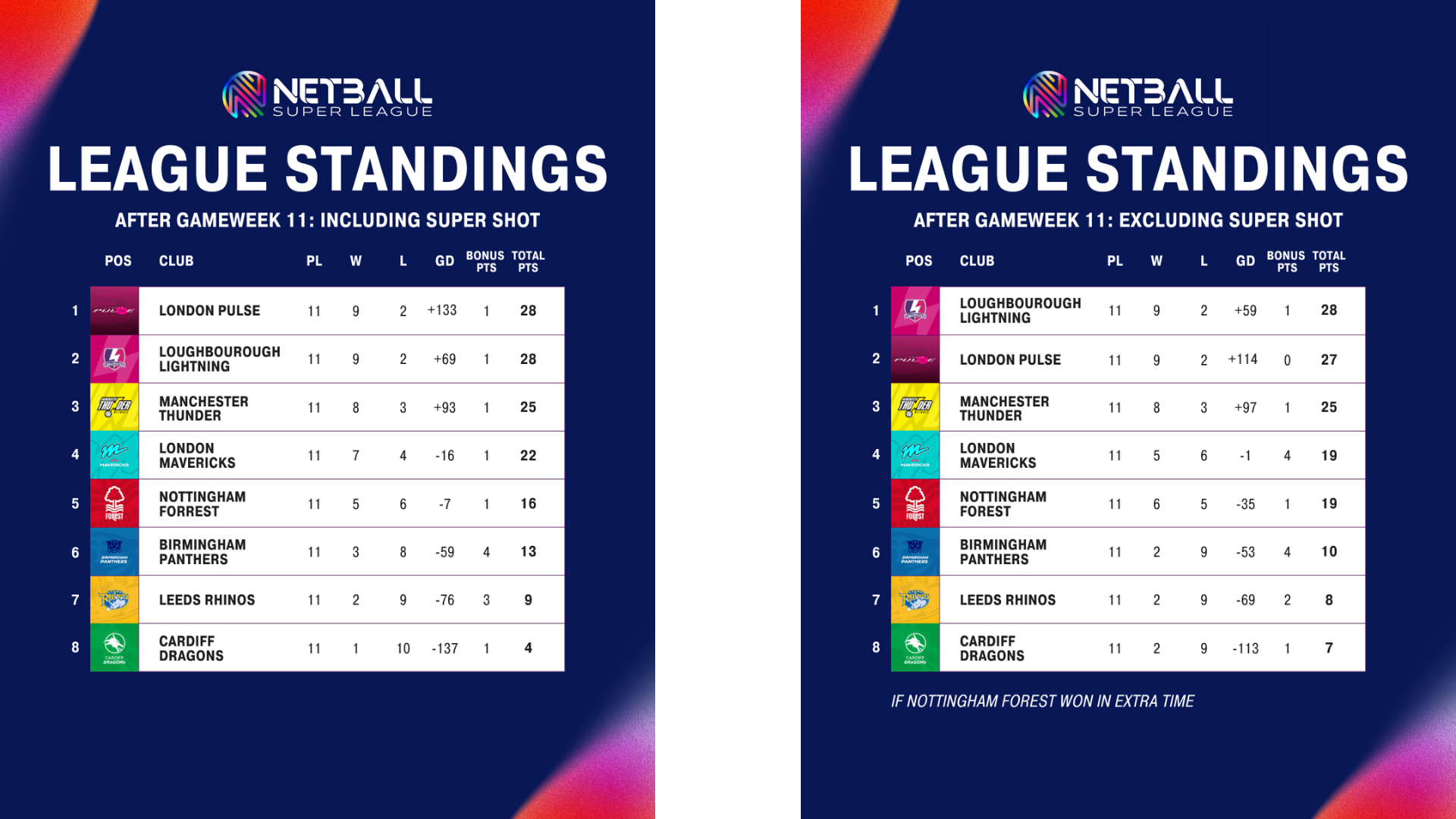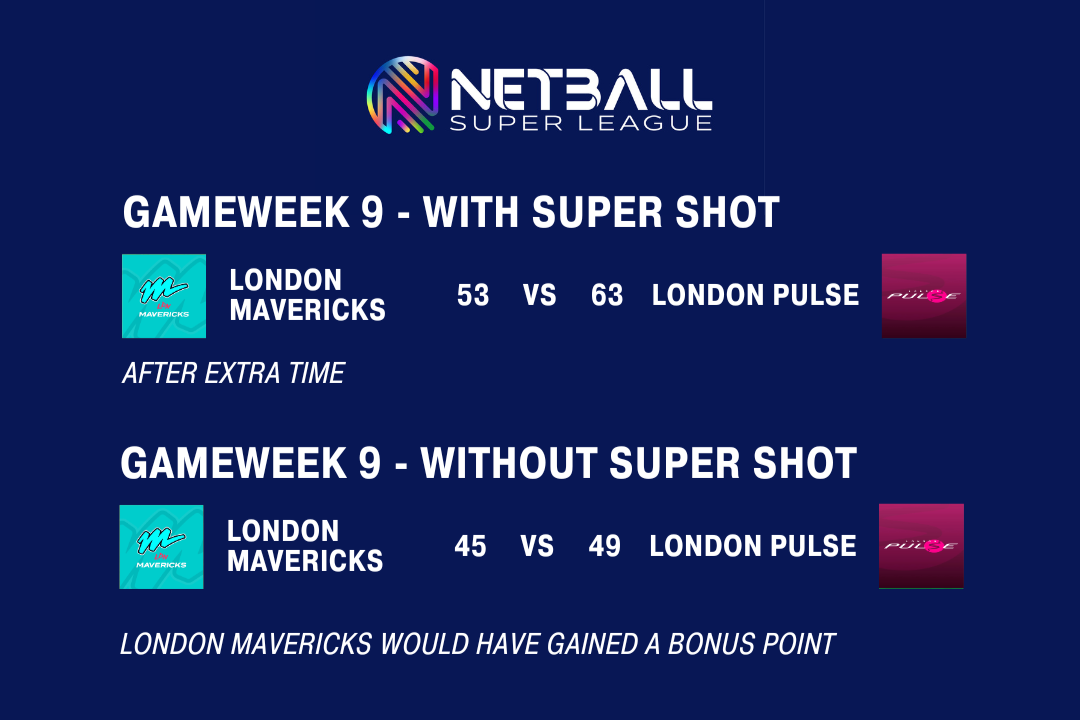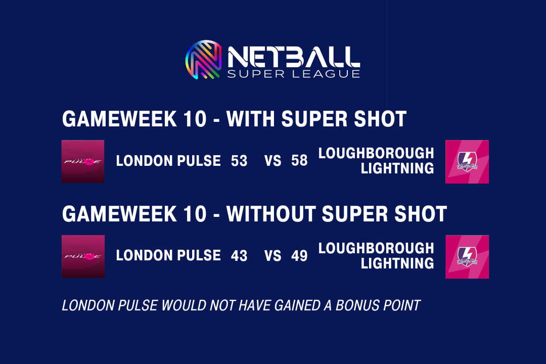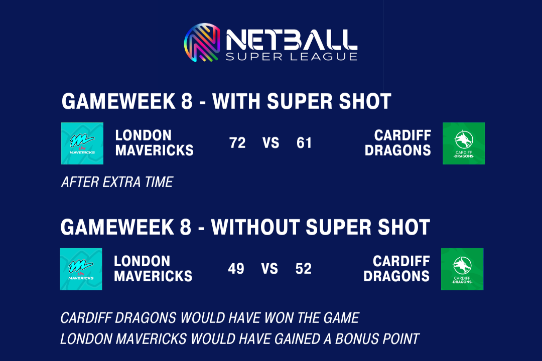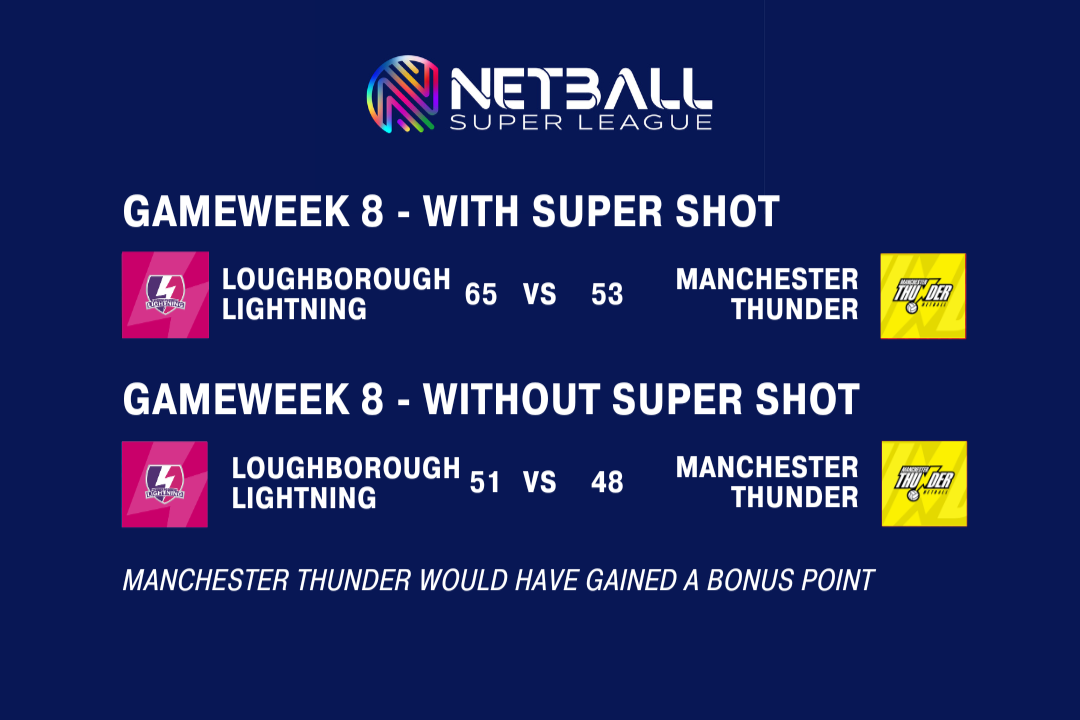 The Netball Super League table would look different (albeit theoretically) had the Super Shot not been in play. Especially the positions at the top of the table.