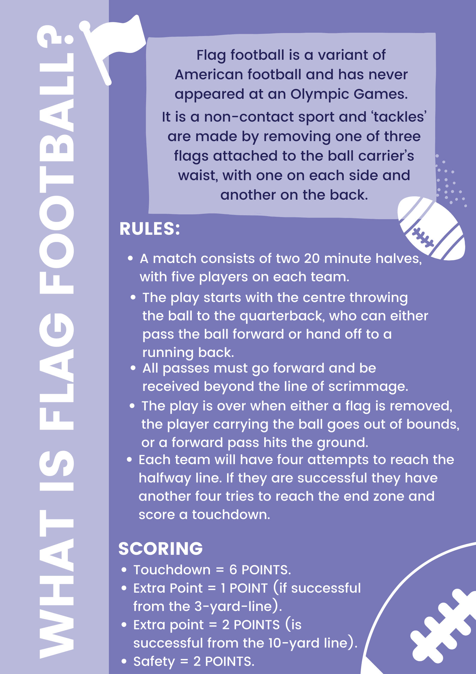 “A lot of people come to flag football from contact and they’ve usually spent a couple of hundred pounds on kit, pads, helmets, whereas flag is just a bit more of an easily accessible version.
