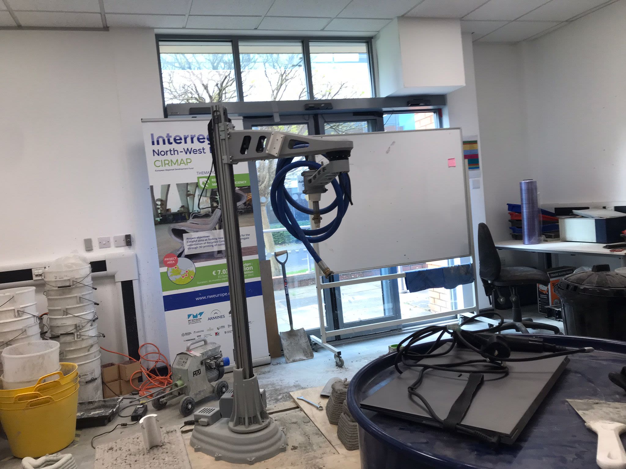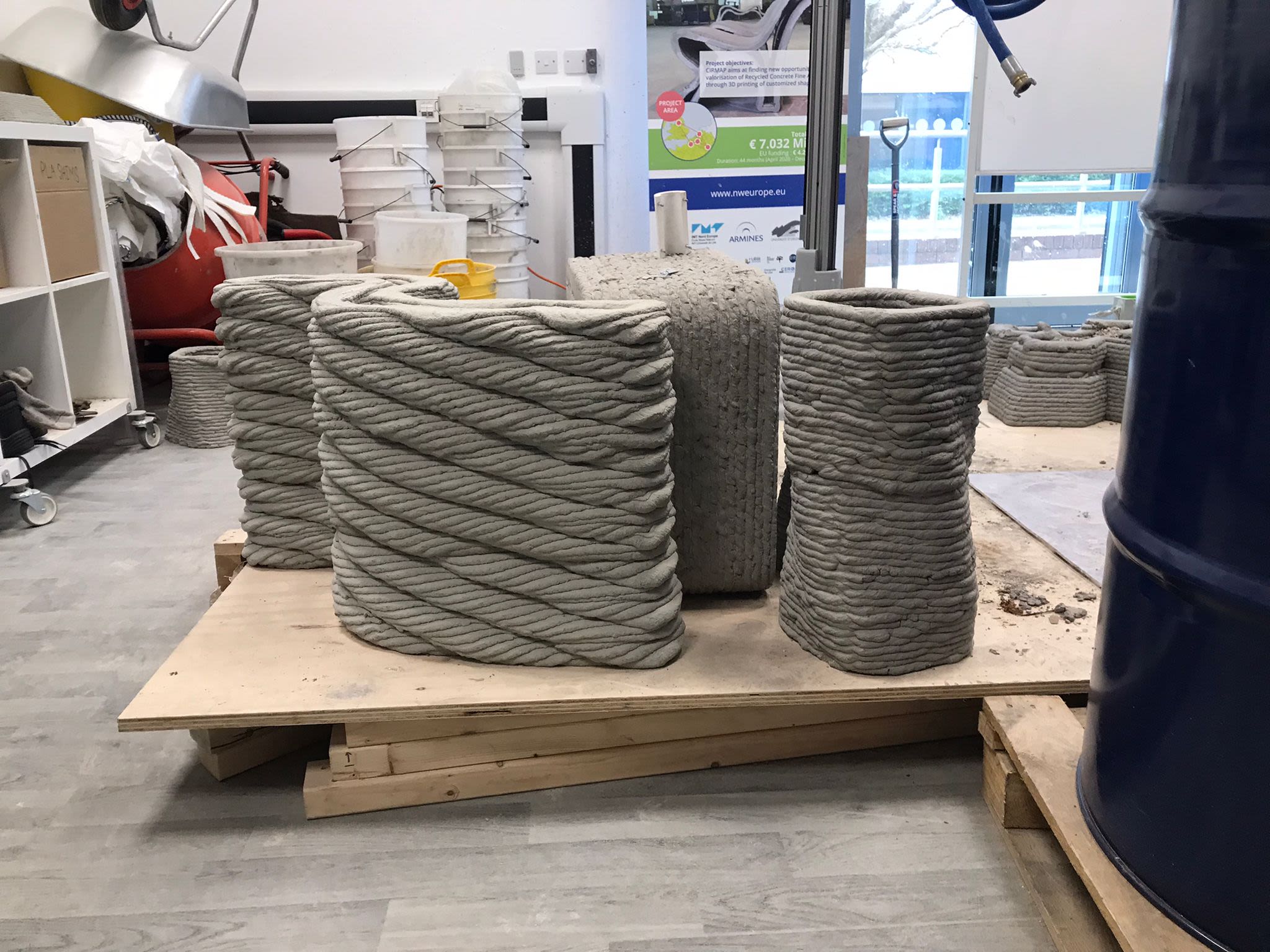 Technical specialist Nick Hurst has led the concrete printing project. In collaboration with industries in France, Germany, the Netherlands and Belgium, he aimed to develop a sustainable mortar by recycling construction waste which can be crushed down into larger more manageable waste.